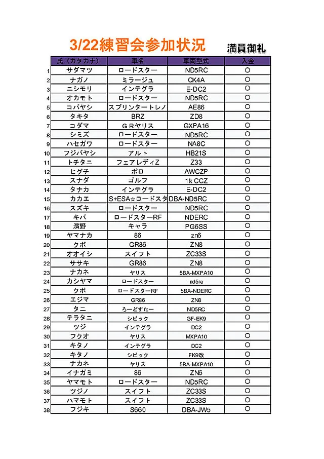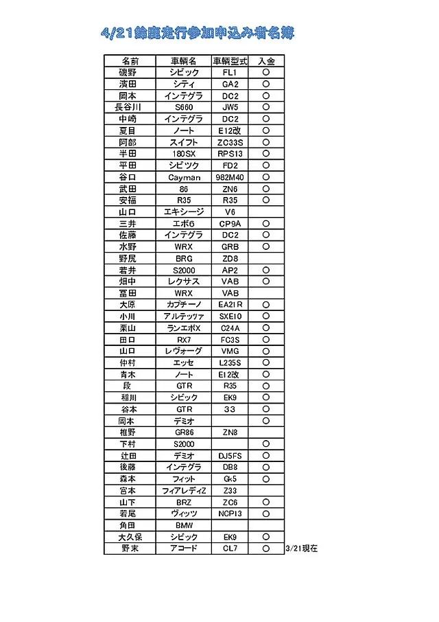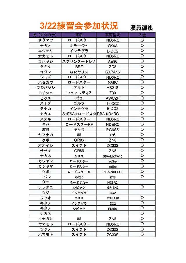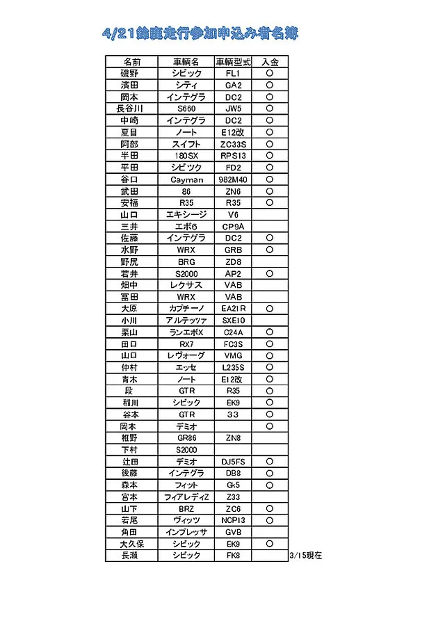・鈴鹿サーキットフルコース走行会現在集計中です3月4日